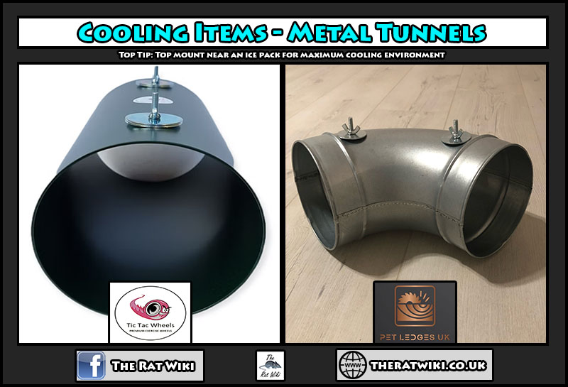 Metal Tunnels – Great little hides to be used by rats all year round but in the summer they have an extra handy feature. When mounted high up in the cage and placed near an ice pack that sits on top of the cage these metal tunnels will absorb the coolness and redistribute it to your rats if they choose to lay in them. A really easy way to cool your rats down and being made of metal they will have a natural coolness anyway even without the ice pack so a handy item to keep in. You can pick up these tunnels from TicTac Wheels and Pet Ledges UK