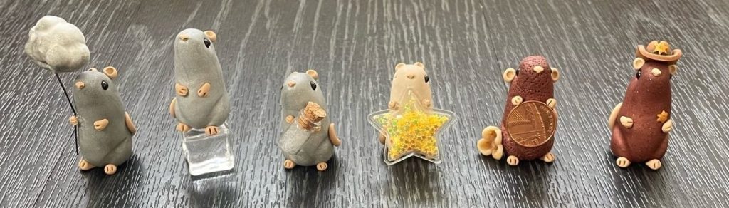 Handcrafted polymer clay rats and other animals. Can be personalised to pay tribute to your own pets. Commissions available to tailor any mini to whatever you want it to look like and what props it comes with.
