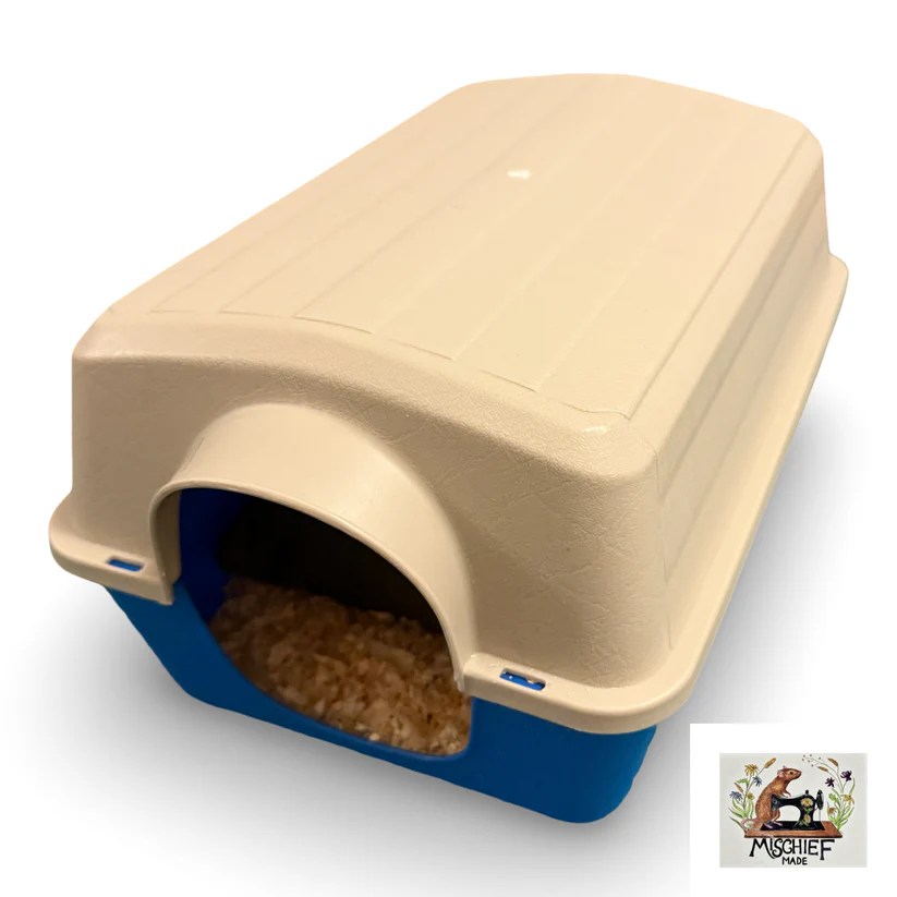 A special cooling chamber you can fill with Mischief Made’s special long lasting cooling packs to create a nice cool room for your rats to relax in when things get too warm.