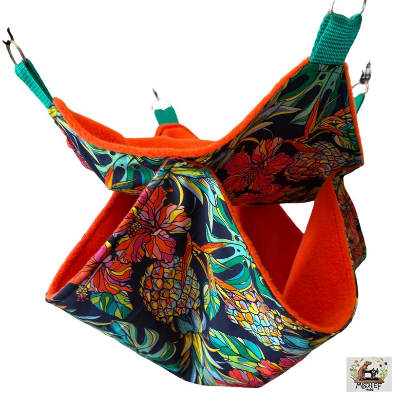 Hammocks with a small chamber designed to fit in a cooling item like an ice pack, glass bottle or tile which is provided with purchase. Simply freeze the disired item then fit into the hammock during a hot day to cool your rats down.