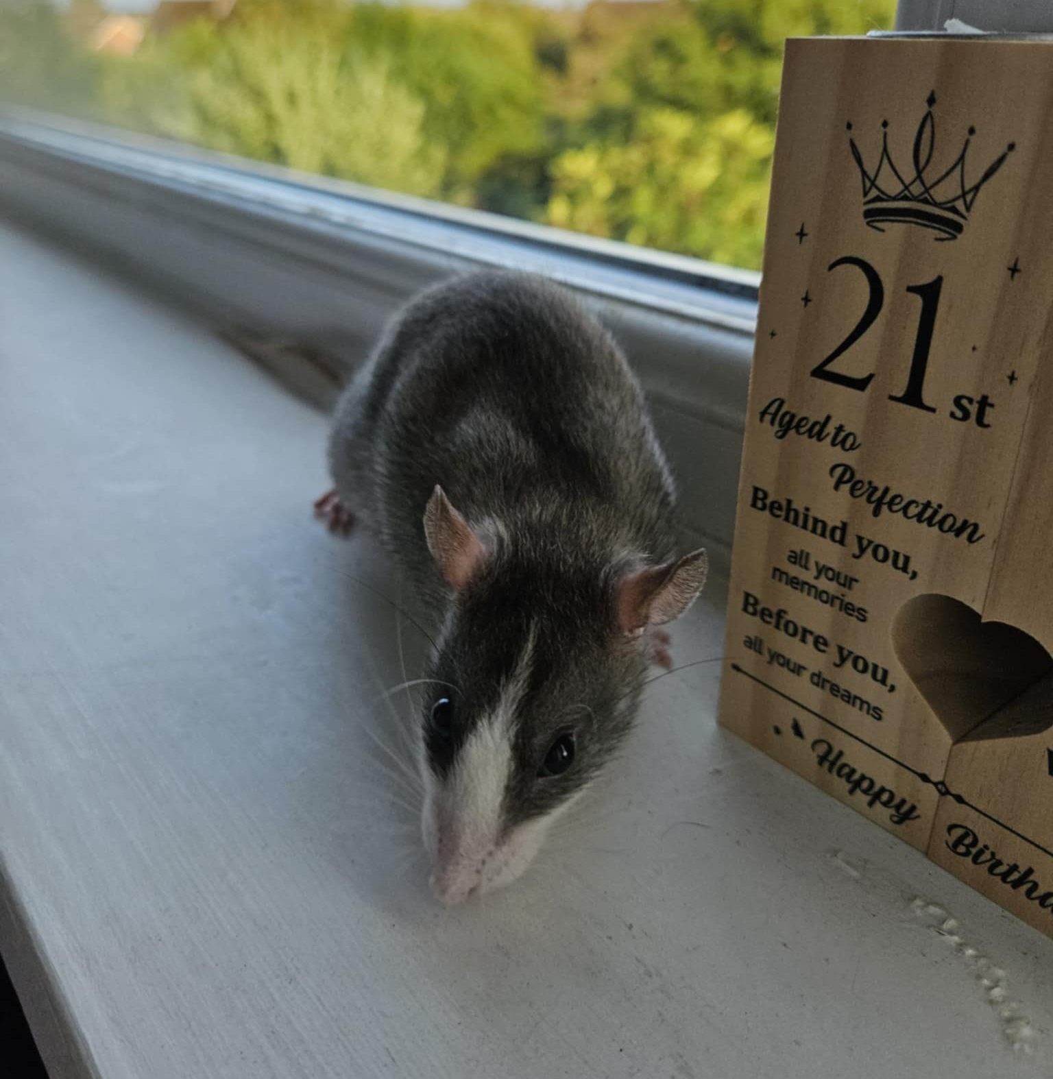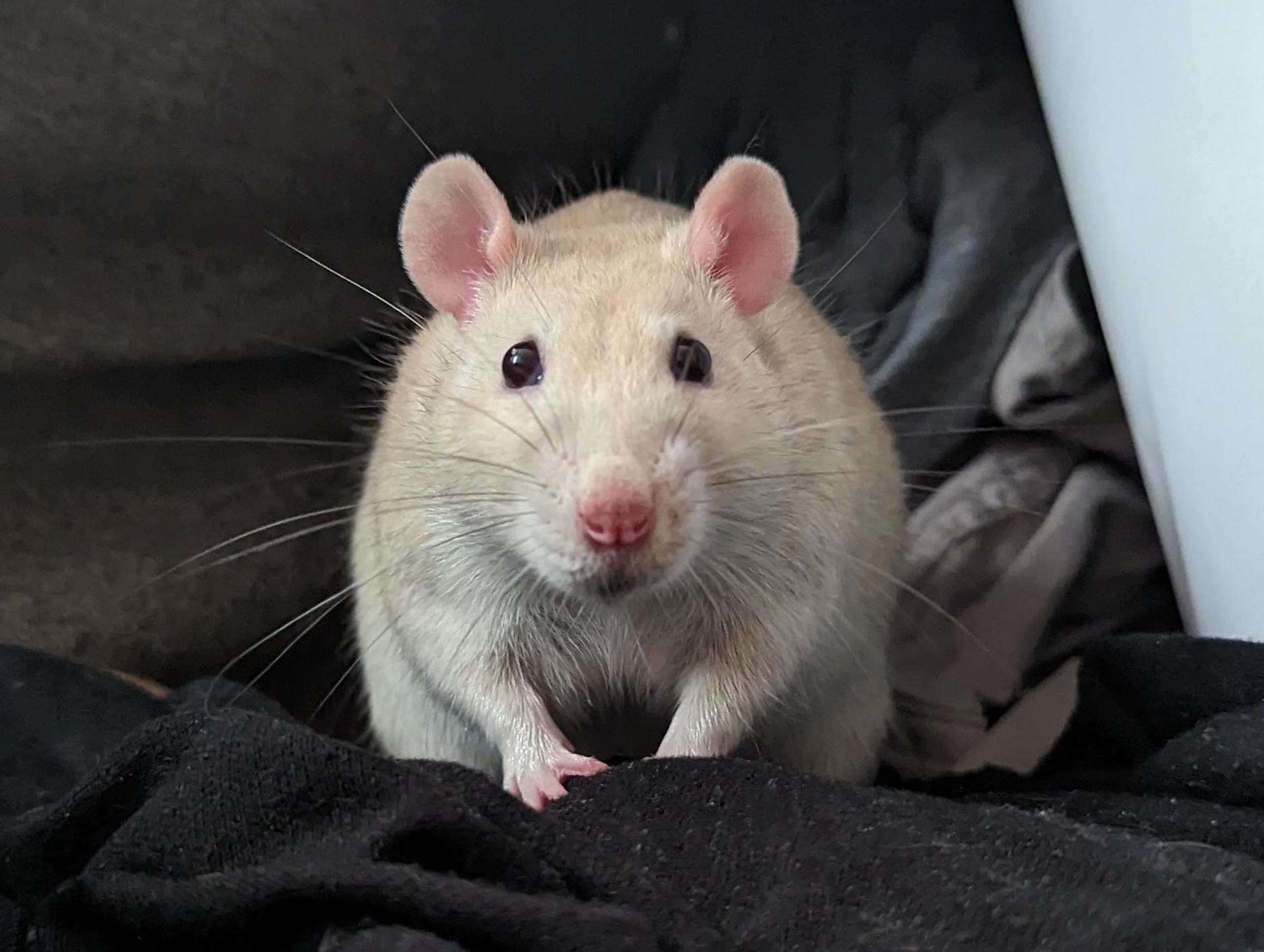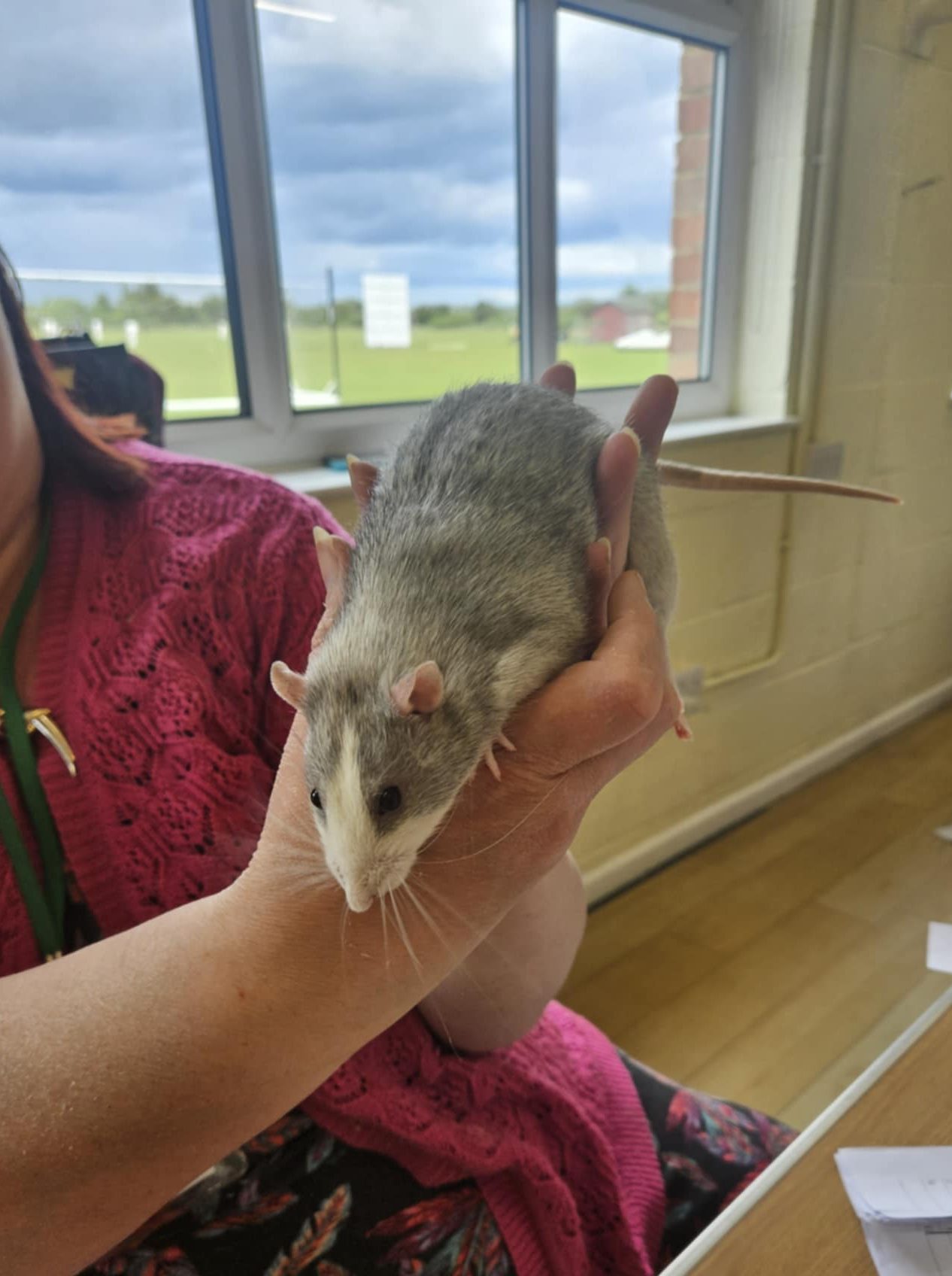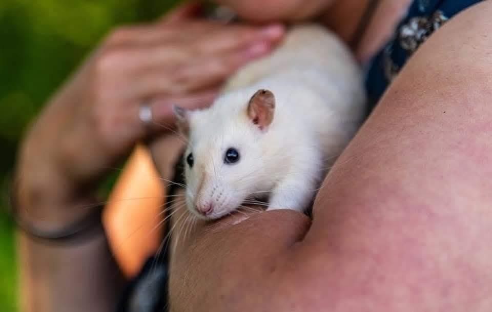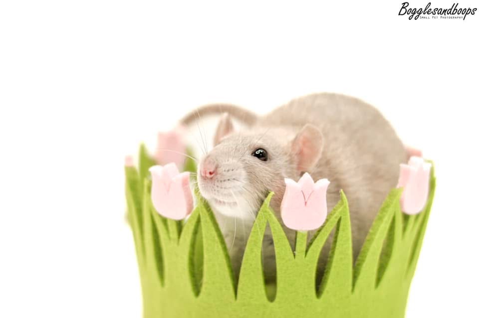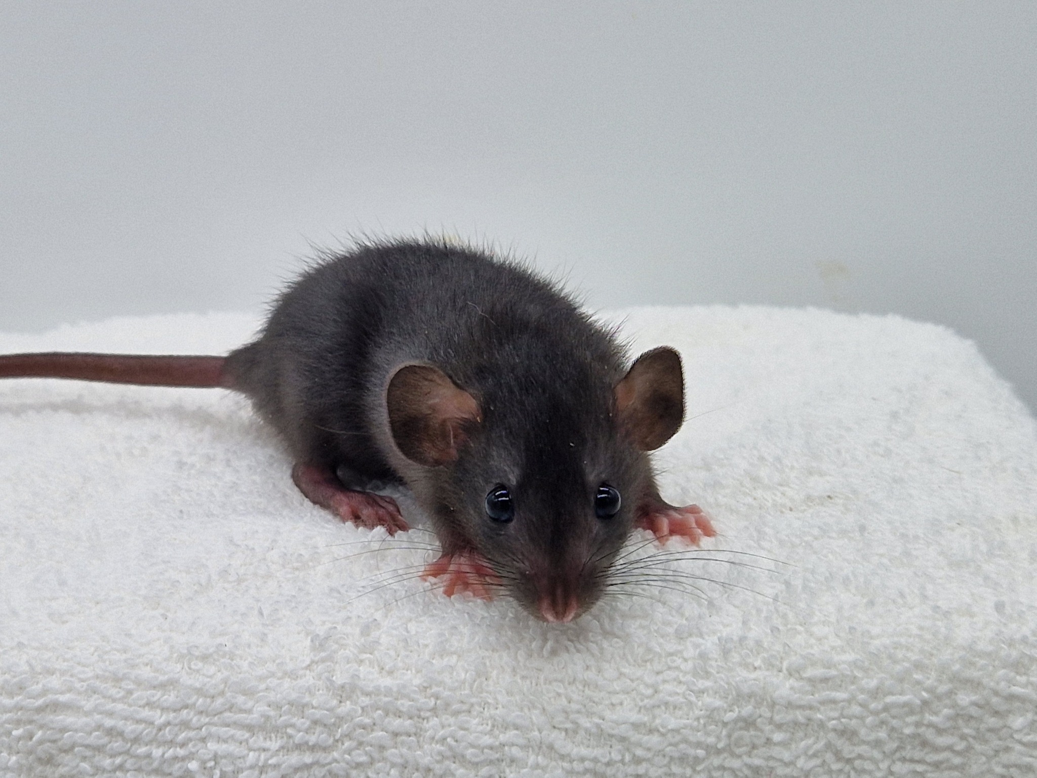 Description: To be less than half the size of a standard fancy rat but easily distinguished from a small example of same. All varieties recognised for other rats to be accepted. Head to be shapely, similar to a standard rat but finer boned and pointed at the muzzle. Eyes big, round and bold with a good width between the ears. Ears to be large and well-shaped. Body to show good length but slightly more rounded over the loin. This may give the appearance of a chopped rump but the bones of the pelvis should not be prominent to the touch. The tail will not be as long or thick in comparison with a standard rat, but nor should it be square-shaped or excessively thin; the bones should not be visible. The tail will typically be held high during movement.