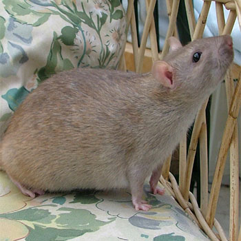Description: Top colour light brown.The whole to give a pale speckled sandy appearance. Undercolour midgrey/brown, intermediate section pearl, tips brown. The entire underside to be white with a clear demarcation between top colour and belly. Head markings may be present or absent. Where present either a blaze or a headspot to be acceptable.Headspot: Headspots to be centrally placed on the rat’s forehead and no bigger than the rat’s eye. The Blaze: is to be a wedge shaped symmetrical blaze of white starting at the nose and extending up the face to the forehead. The blaze to cover the whisker bed and to taper to a fine point midway between the eyes and the ears. Not to extend to the cheeks or the eyes. Forelegs to be white to half their length, backfeet to the ankle (hock or tarsal bone). Tails to be pied.