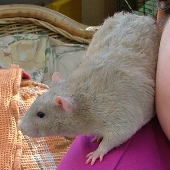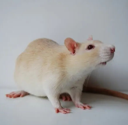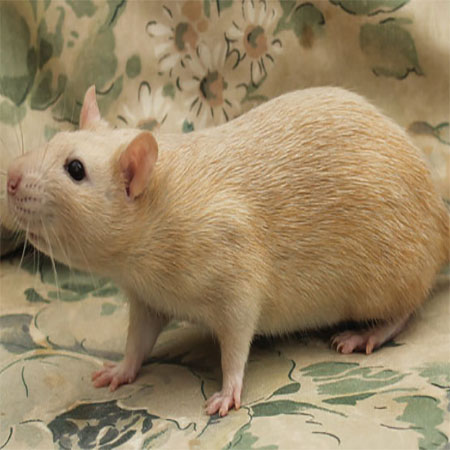 Description: The back of the rat to be a delicate shade of apricot, ticked with silver and shading to cream on the sides and face. Head markings not to be present. Undercoat white, belly white.