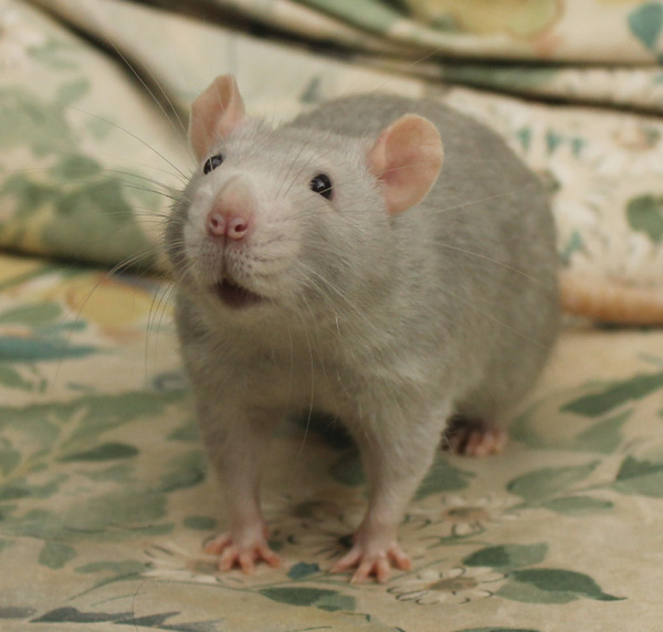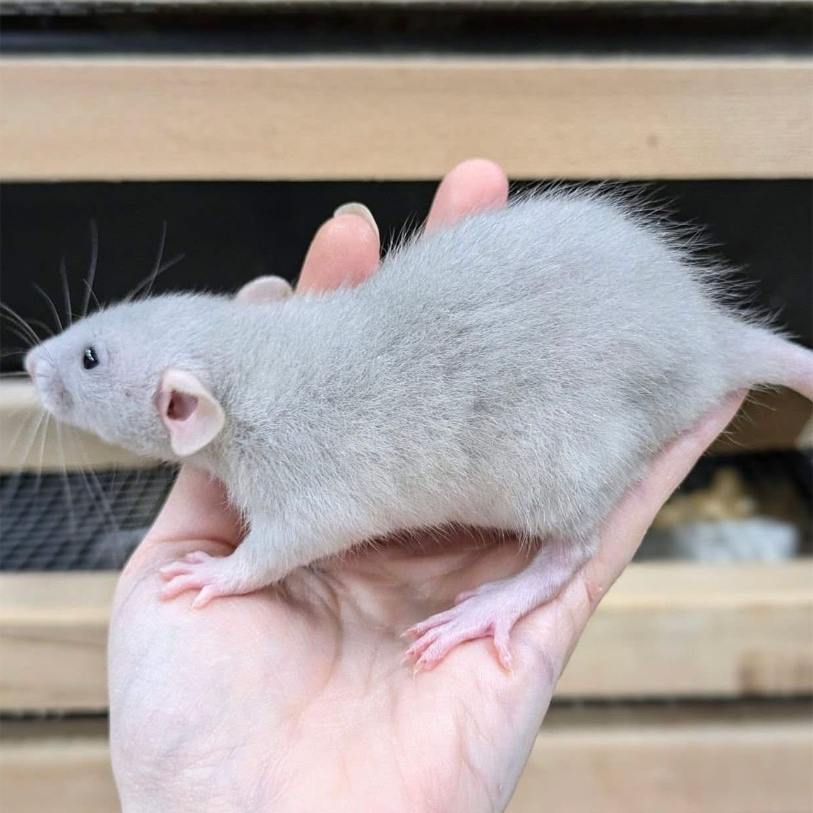 Description: To be an even and bright shade of blue grey with no suggestion of icy, creamy or brownish tones. Should be distinctly different to the icy blue tone of the platinum rat and the pale dove of the powder blue. Undercolour light blue to the skin. Belly colour to match top. Feet grey.